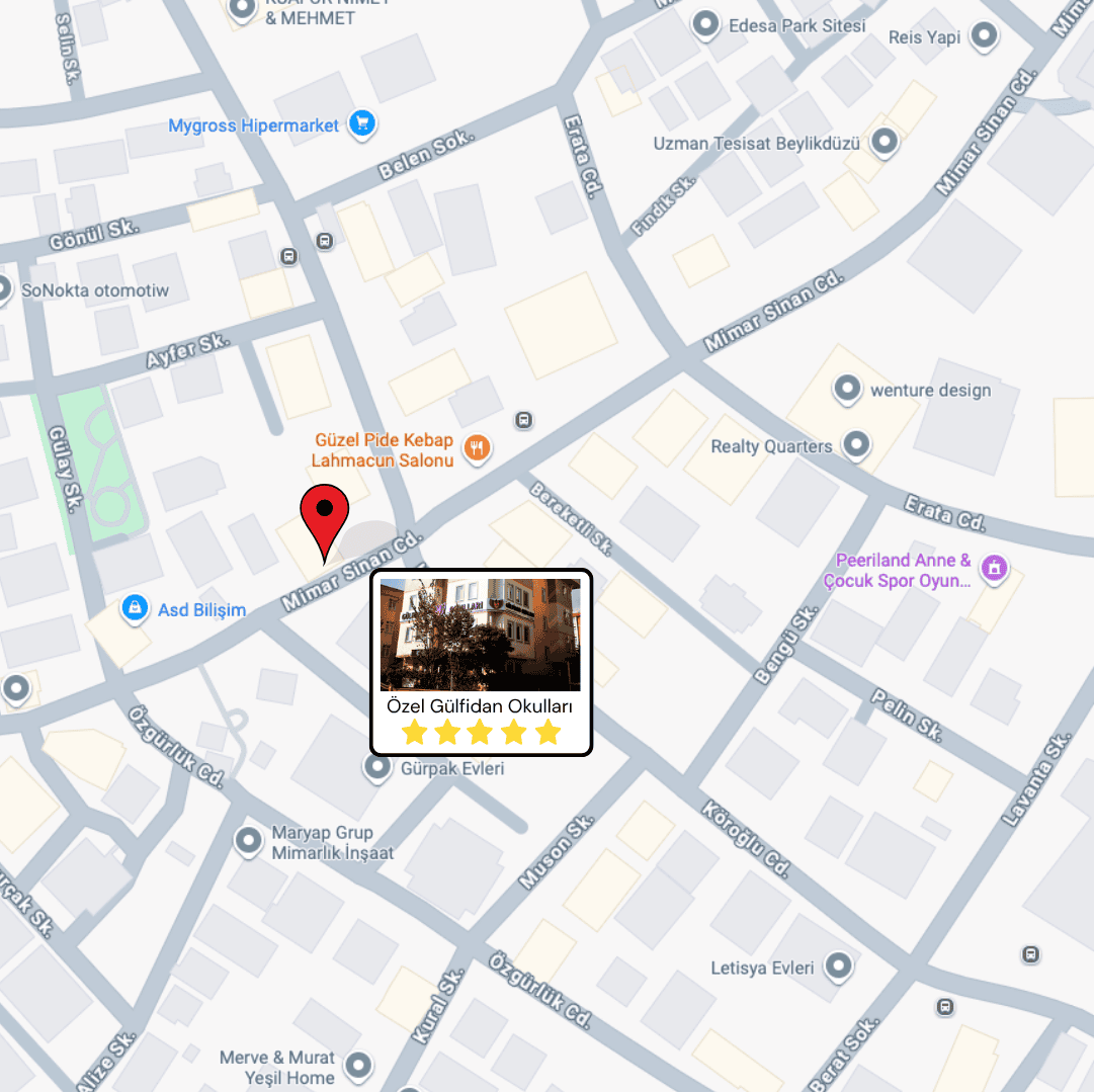 Öğrencilerimizin fiziksel ve gelişimsel özelliklerine göre inşa edilen Gülfidan Okulları kampüs binamız; okul öncesi ve ilkokul kademelerinde eğitim vermektedir.